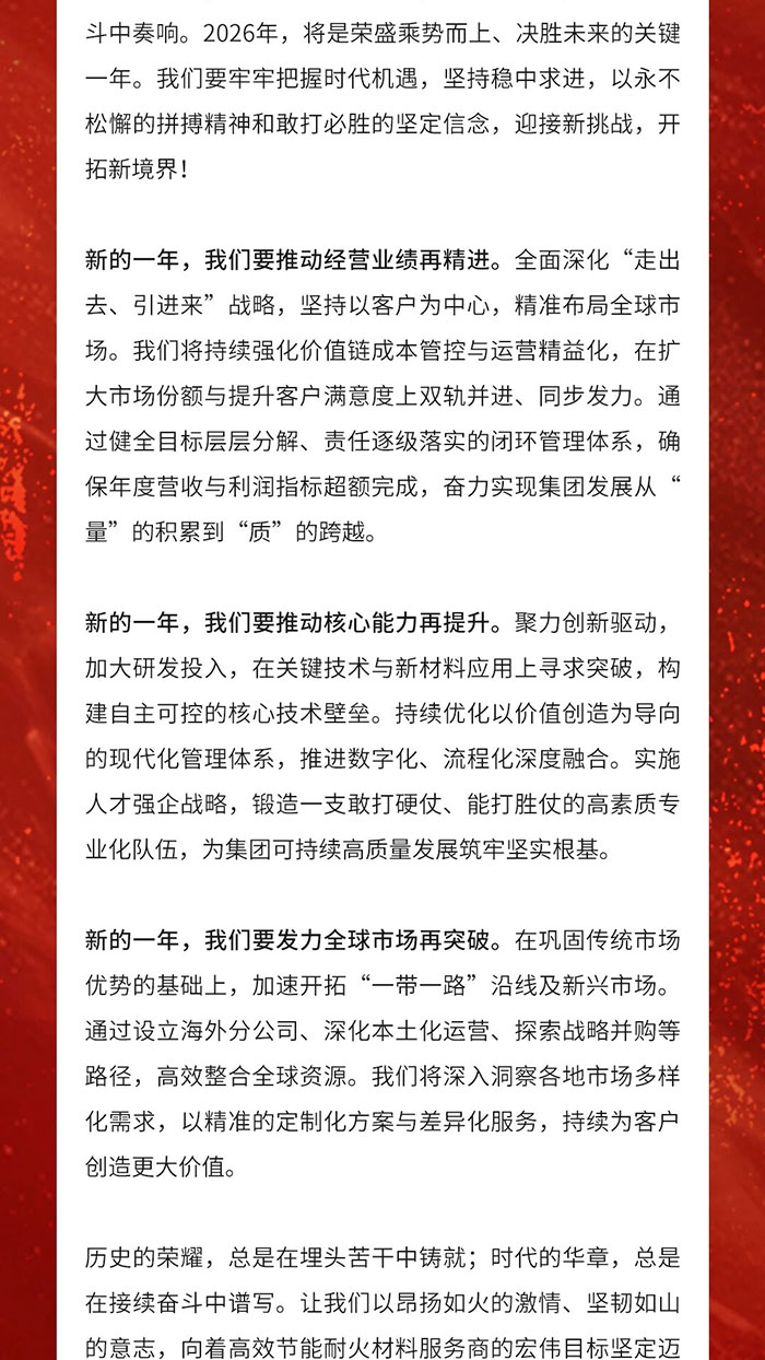 发布时间:2025/12/31 11:22:32 点击率: 来源:高铝砖厂家 作者:荣盛耐材砥砺奋进 乘势而上 | 河南荣盛科技集团2026年新年献词