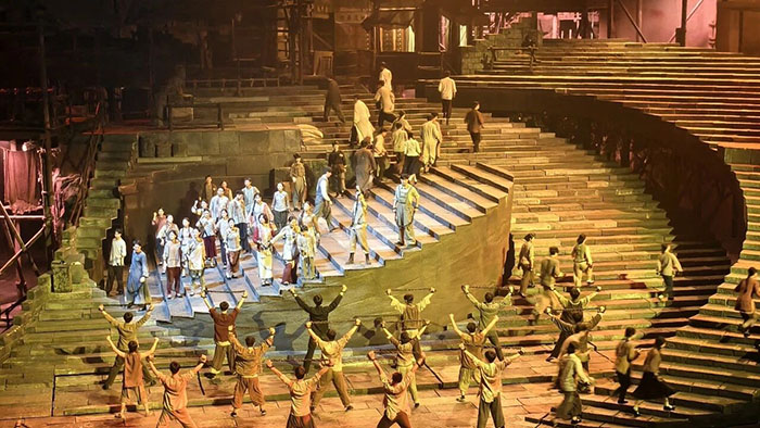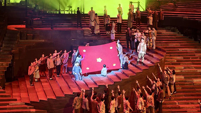 剧中,革命者在狱中得知新中国成立消息后,即便不知guoqi样式仍共同绣制红旗的场景,以及面对敌人威逼利诱坚守初心的动人情节,让现场众人深受震撼、热泪盈眶。70分钟的演出,不仅是艺术的盛宴,更是精神的洗礼,让大家在沉浸式体验中深化了对红岩精神的理解,汲取了攻坚克难、勇毅前行的精神力量 。